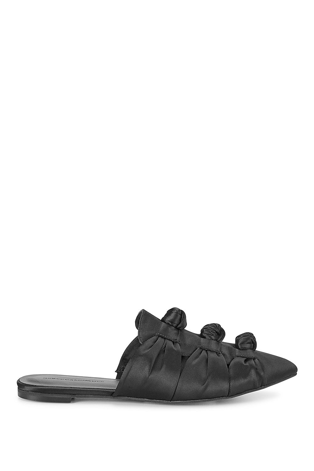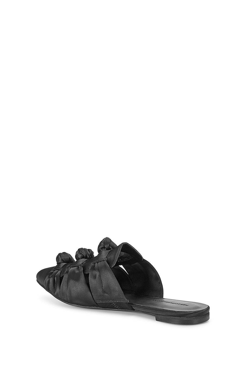 Get your knots in a row with our comfy-chic Aden slides. Done in retro-cool black satin with cutout detailing, these slide-on beauties will tie your modern look together with ease.