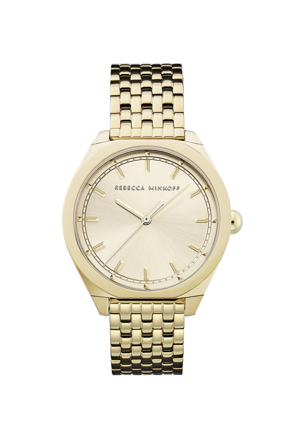 A seven-link bracelet with monochromatic PVD case and 38mm sunray dial enhances the sporty look of this sophisticated three-hand watch.