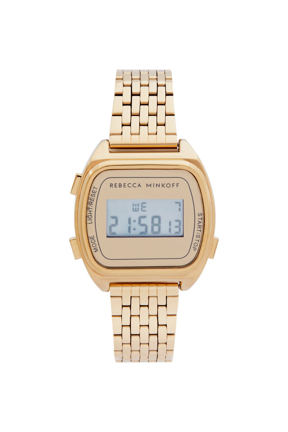 Inspired by a vintage silhouette, the Rebecca Minkoff Digital watch boasts an elegant stainless steel chain-link bracelet and a digital face for precise timekeeping.