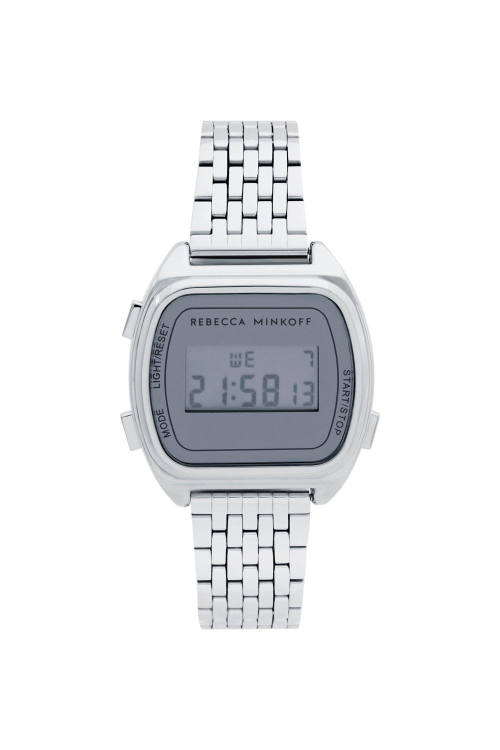 Inspired by a vintage silhouette, the Rebecca Minkoff Digital watch boasts an elegant stainless steel chain-link bracelet and a digital face for precise timekeeping.