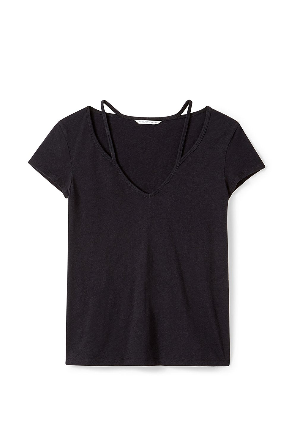 Put on a deep cut. Our Lonnie is a statement top masquerading as a basic tee. Her low v-neckline is spiced up with a little missing material that seems to say, “I see right through you.”
