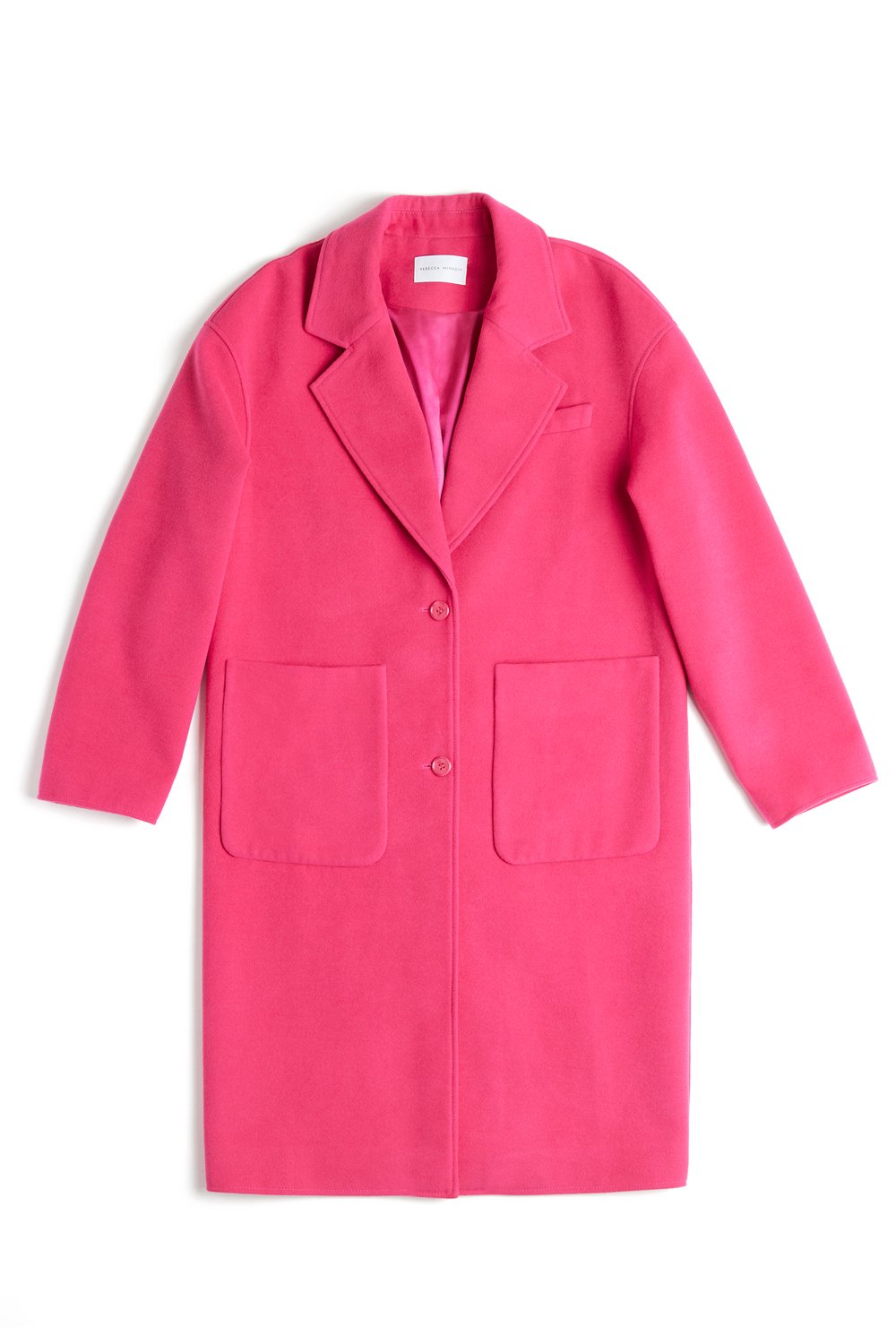 Nothing makes a statement quite more than our Lucia coat. With a two-button front closure, notch lapels, and oversized front patch pockets, this hot pink topcoat has a relaxed shape that makes for easy layering over chunky knits.