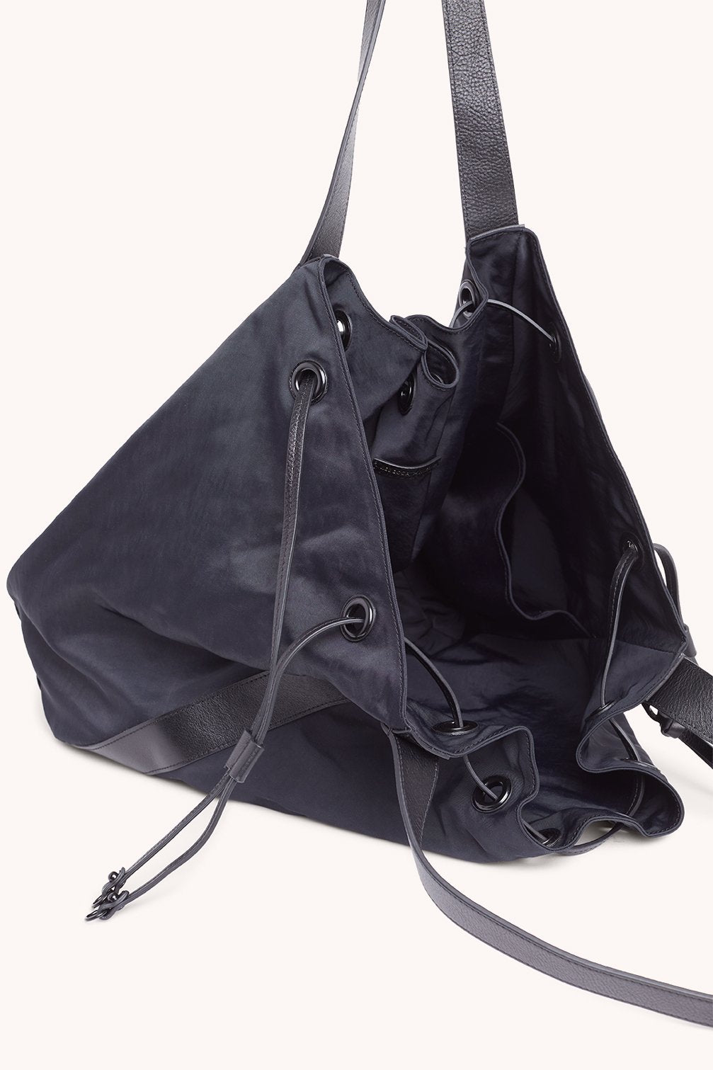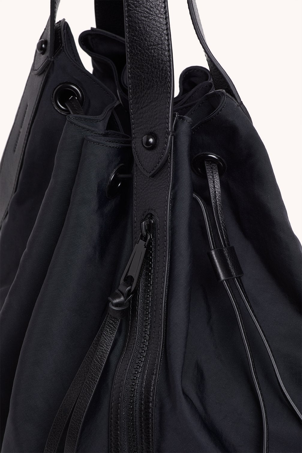 • Washed Nylon with leather trim