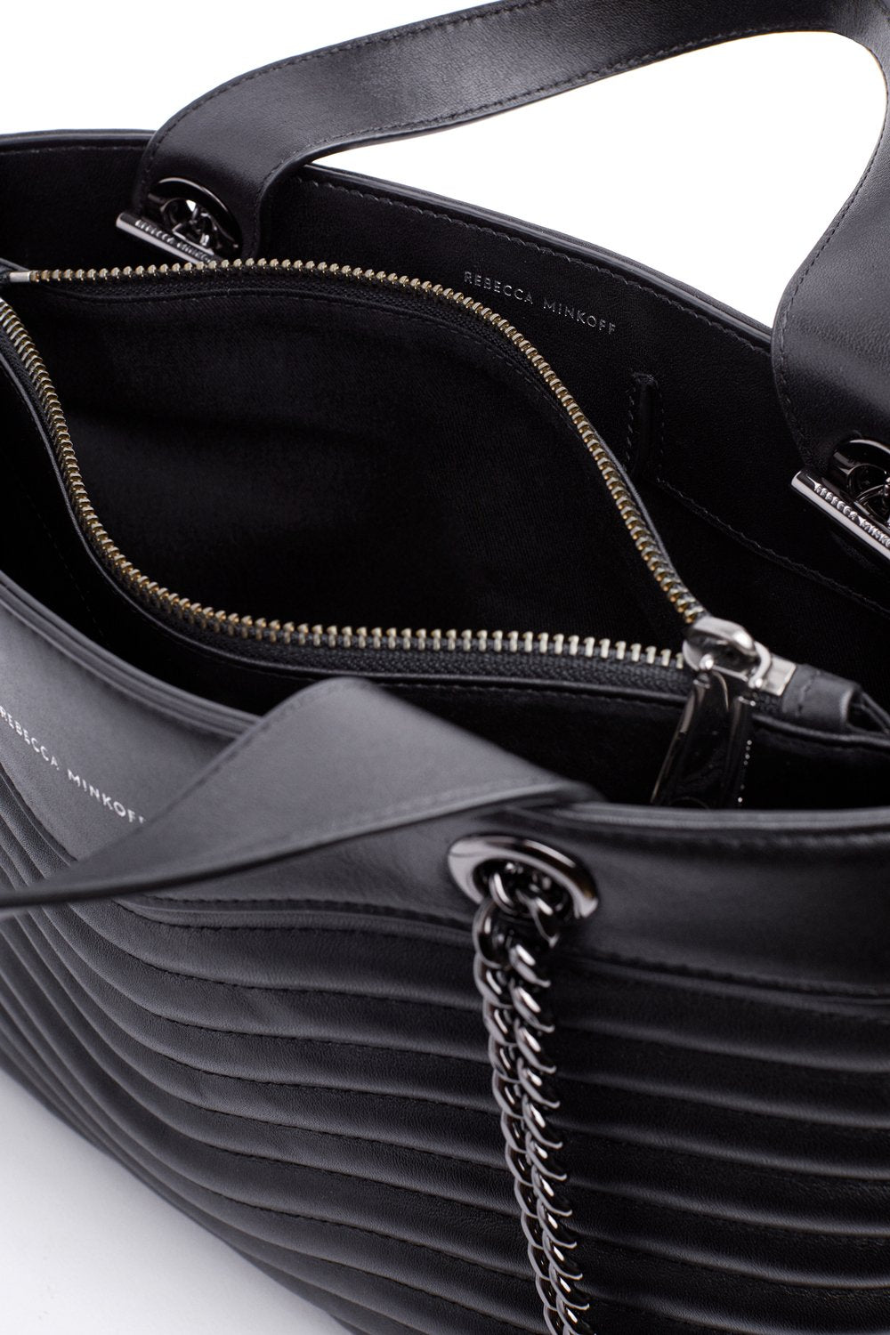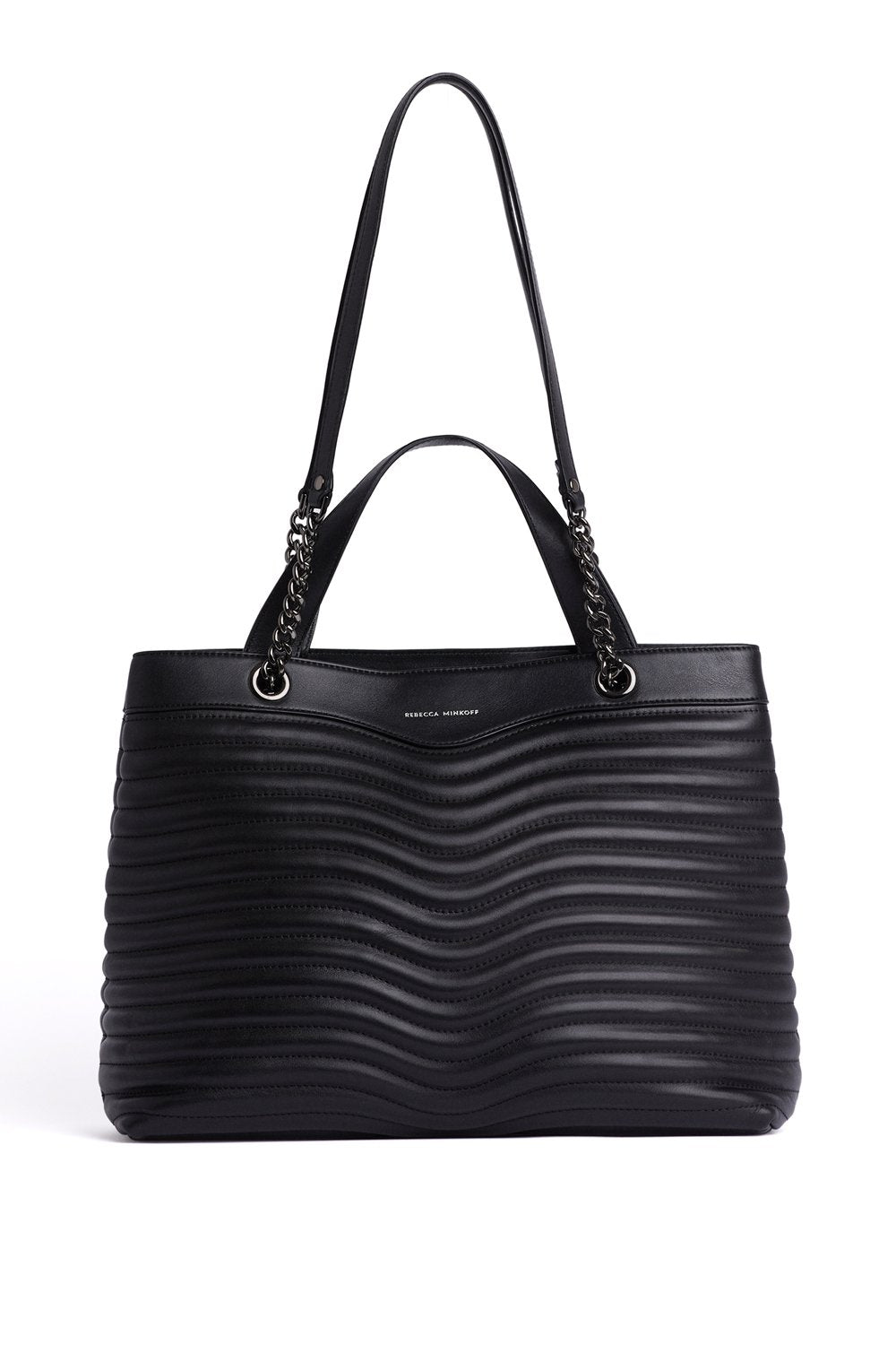 The tote that works 9–5 and beyond, our M.A.B. Quilted Tote is crafted from smooth leather and has a signature wave quilted pattern. Slightly bigger than our Satchel version, this structured bag features an open interior with a center zip pocket and magnetic closure, multiple interior pockets, and a slip pocket in the back. Hold it by its top handles or go hands-free with the chain shoulder straps.
