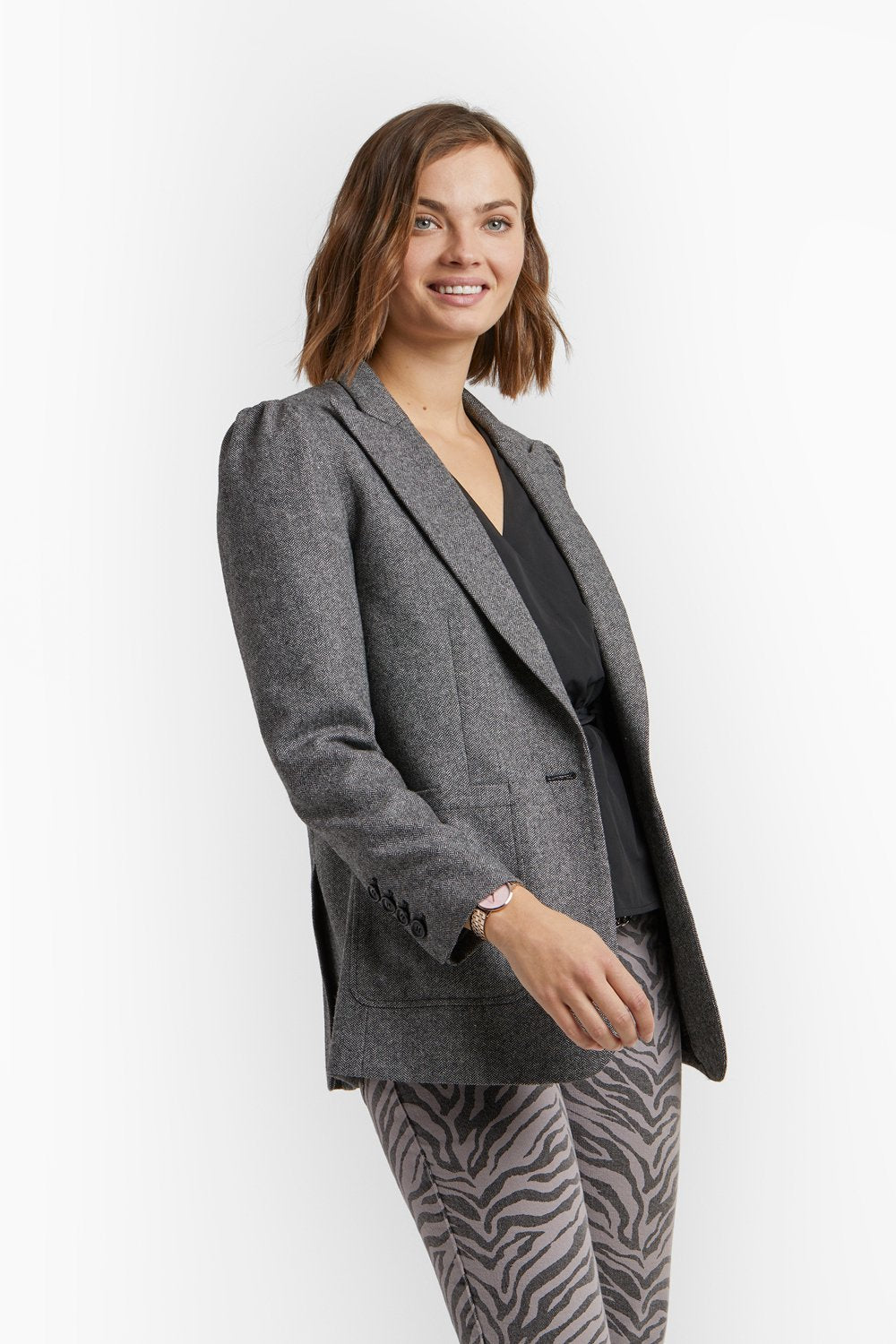 With its ruffled sleeves and oversized patch pockets, our single-breasted Pax Blazer has a low-key feminine look and feel. Made of a soft brushed herringbone, this jacket looks just as chic with jeans and a tee as it does with a skirt.