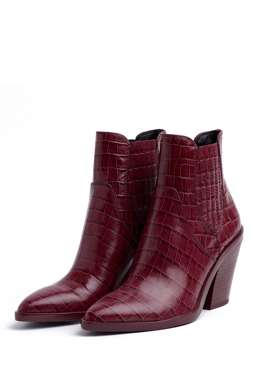 Our Sabana Boot is a Western-inspired bootie with a streamlined pointed toe and mid-height Cuban heel. Crafted from croc-effect leather, these booties have elasticated side panels making them easy to slip on and off.